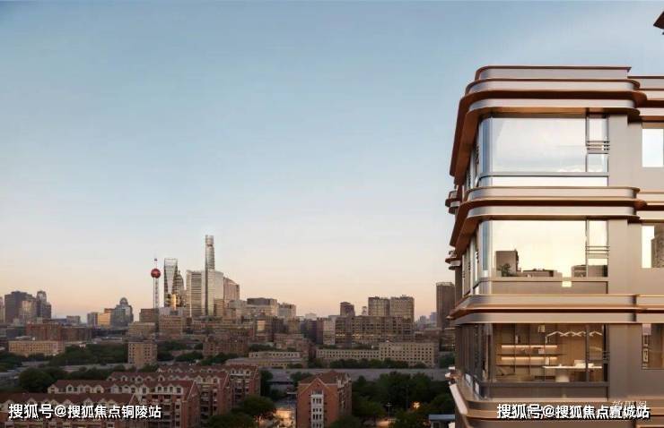 小高层外立面采用了弧形天幕设计, 大面积玻璃天幕立面辅以香槟金铝板条 ,搭配超高的窗墙比,不仅重塑了周边的城市天际线,更是可以对望陆家嘴天际线,豪宅范十足!
