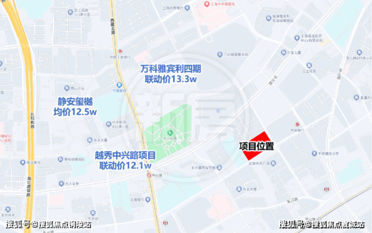 该地块东至公兴路,南至永兴路,西至静安区闸北第三中心小学,北至象山小区;该板块是静安区新房的主力供应区域, 地块周边待上市新盘有越秀中兴路项目(联动价12.1w)、静安玺樾12.5w、雅宾利四期(联动价13.3w)等项目。