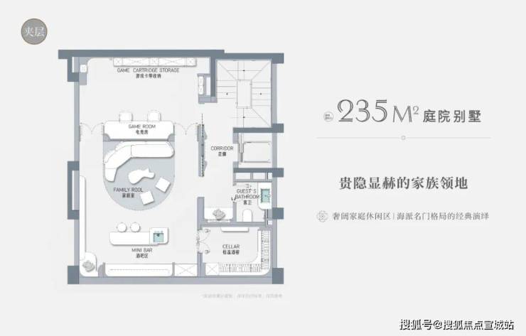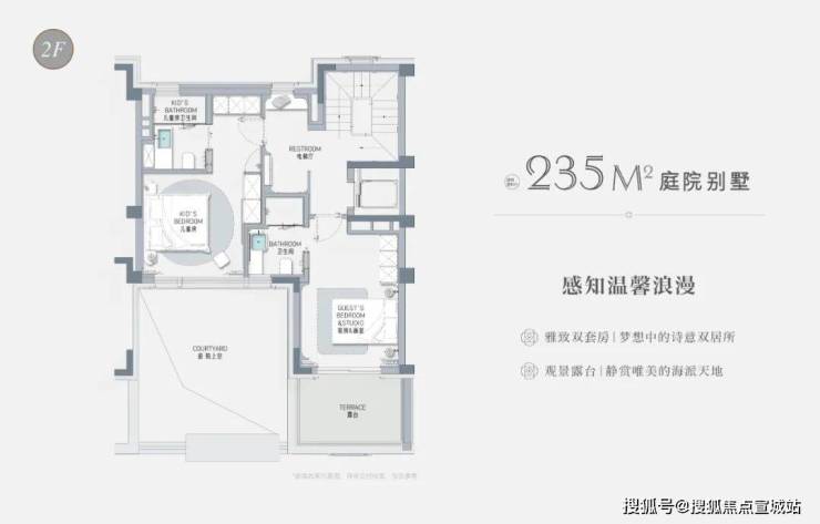 以建面约235㎡的庭院别墅样板房为例,户型附赠地下室、庭院、露台、阁楼空间,附赠面积达到户型总建面的60%左右,市场上少之又少!