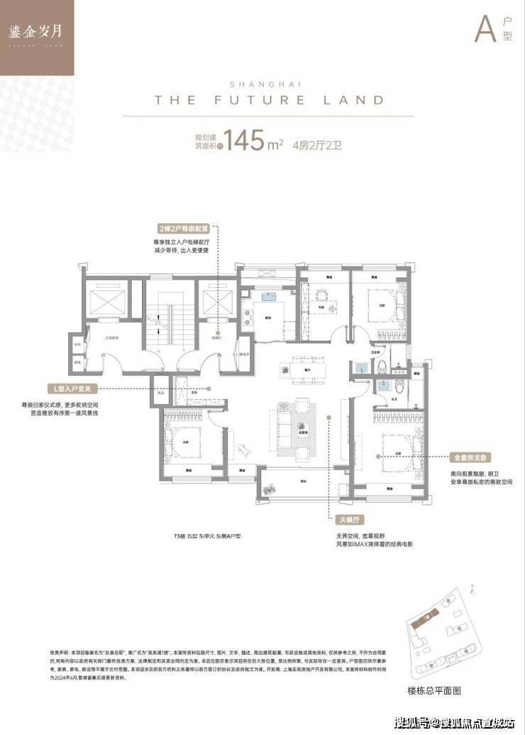 户型信息:主力户型为建面约 99㎡的 3 室 2 厅 2 卫、127㎡的 4 室 2 厅 2 卫和 145㎡的 4 室 2 厅 2 卫。户型设计上,多采用 2 梯 2 户配置,有独立入户电梯前厅,大横厅设计,采光和通风条件较好。