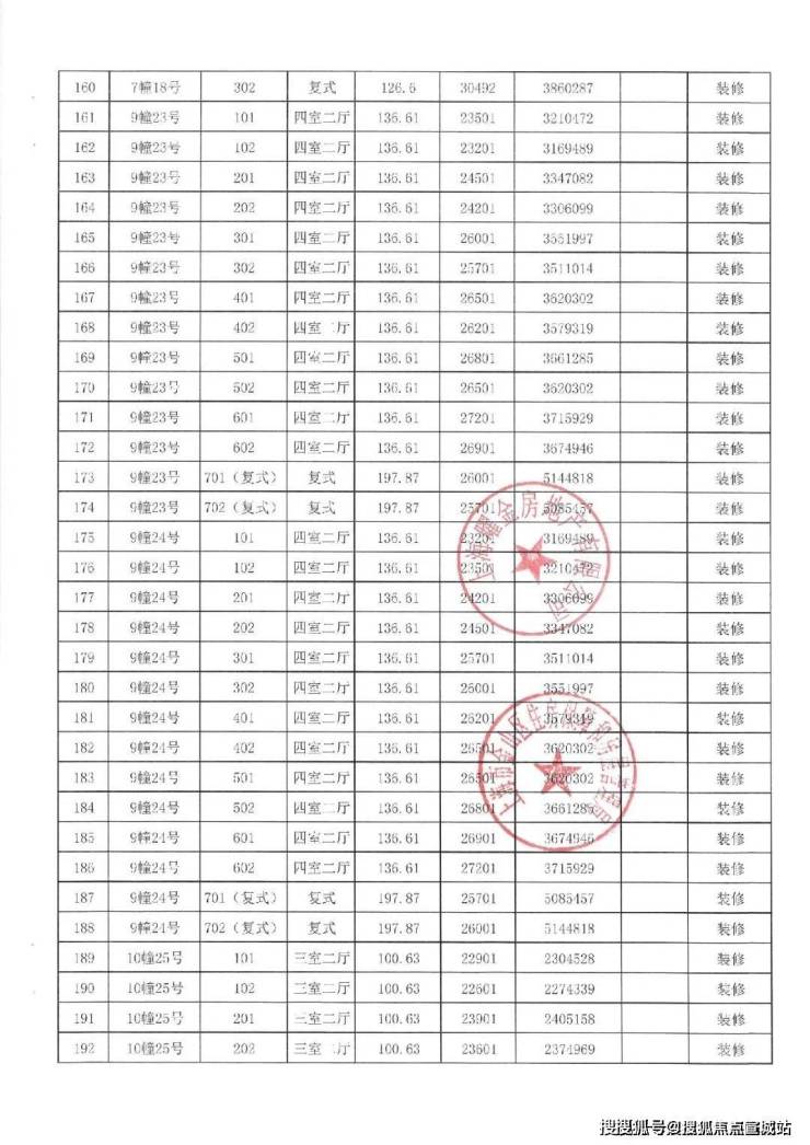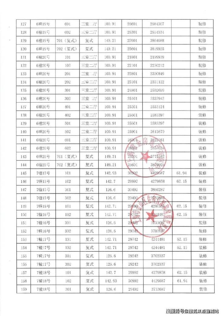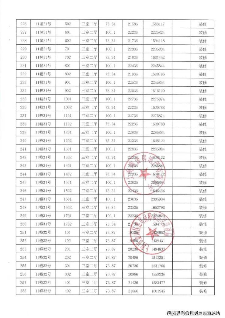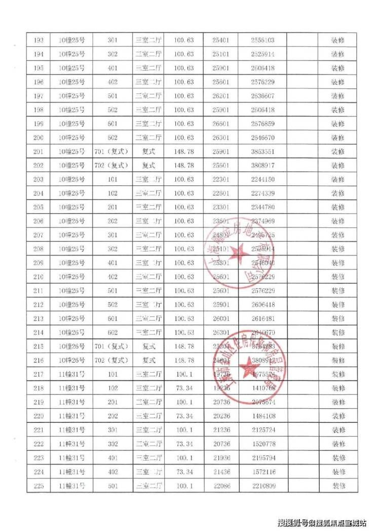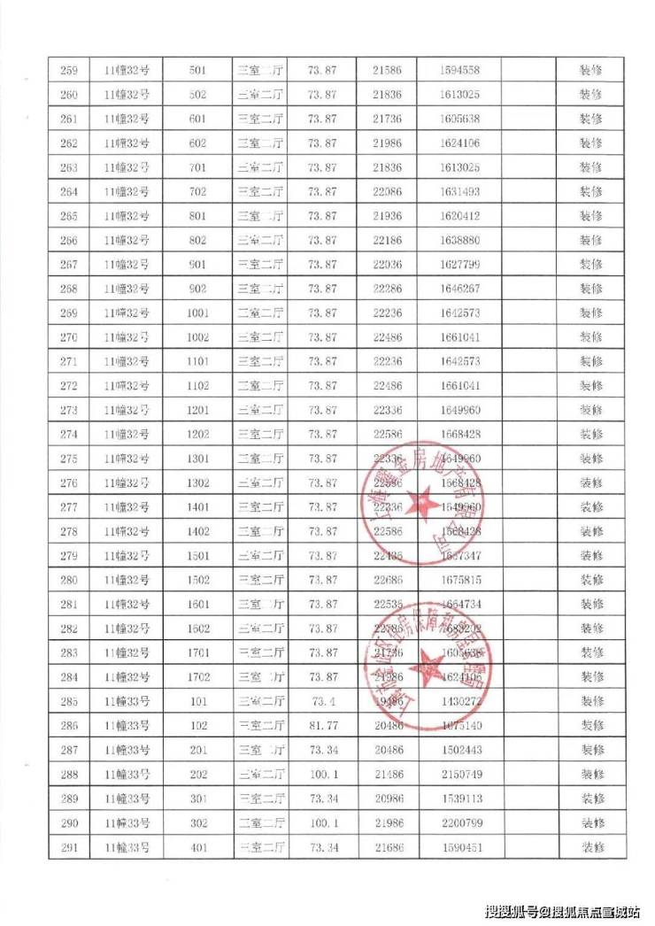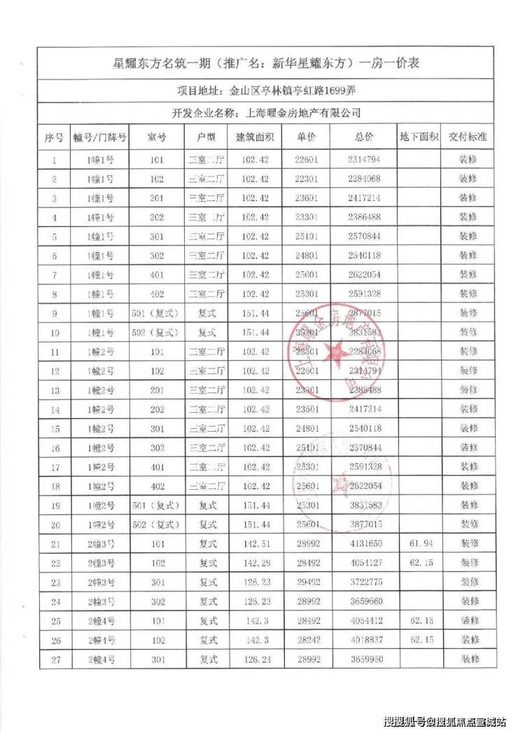 一房一价表如下: