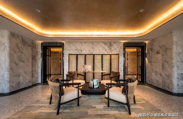 更有面积超大的会所空间,像是行政酒廊与图书馆的复合体,它不是一览无遗的辽阔,而是隔而不离的丰饶。