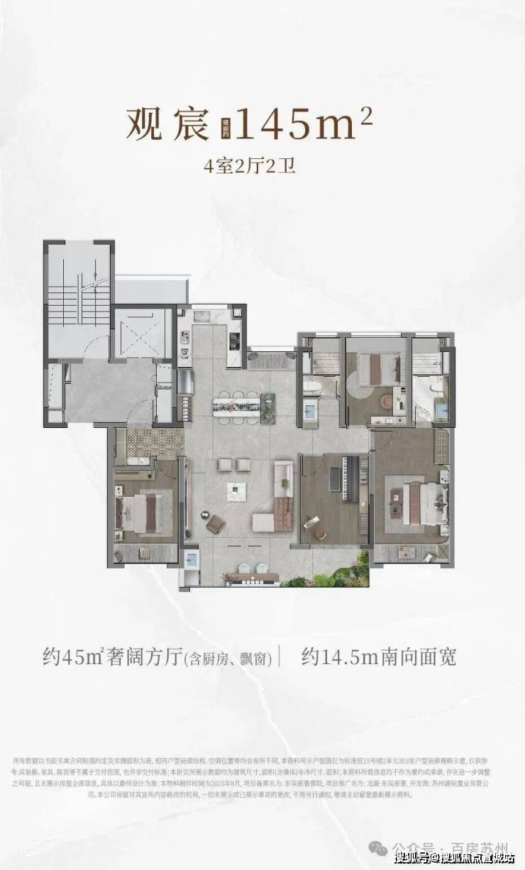 约145-189㎡轻奢改善,其中3栋创新打造为第四代空中院墅(189平)