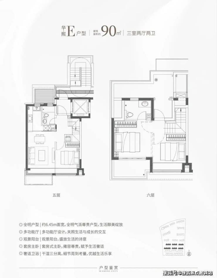 华发还有目前松江比较稀缺的叠加房源,分为六层叠加和四层叠加。主力户型建面约90-133㎡,特别是这个E户型,建面仅约90㎡,对于想住叠加但预算有限的购房者来说,面宽约6.45米,上下动静分离带,是个不错的选择!