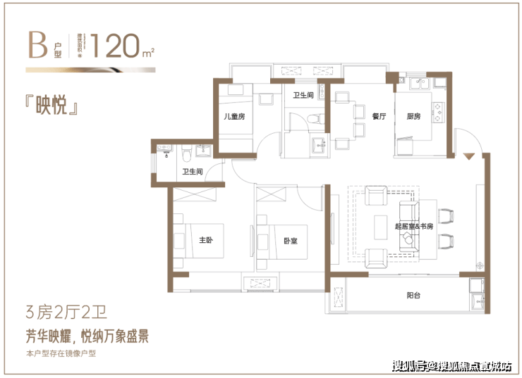 空间布局合理,动静分区明显。客厅与餐厅相连,形成宽敞的活动空间,连接景观阳台,采光通风极佳,让您在家中就能享受阳光与清风。卧室分布合理,保证了家庭成员的隐私,其中主卧套房设计,配备独立卫生间和衣帽间,提升居住的舒适度与品质感。