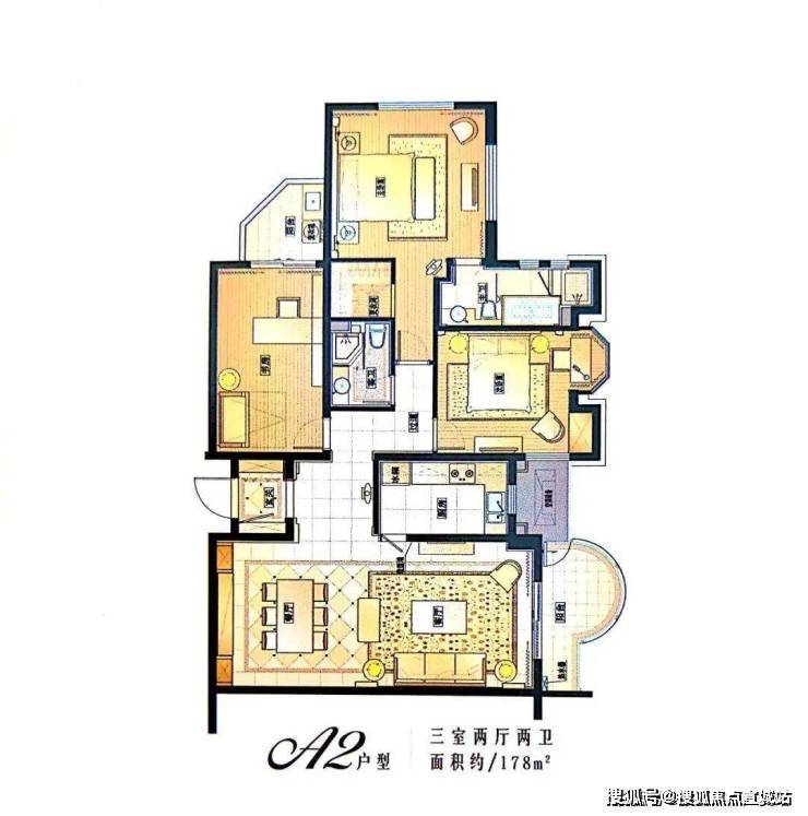 户型建面为110、140、178㎡,2房和3房,2梯4户设计。