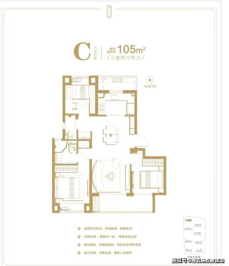 主力户型:均为三居室,建面涵盖 94 - 122㎡,具体包含 94㎡3 室 2 厅 1 卫、103㎡3 室 2 厅 2 卫、105㎡3 室 2 厅 2 卫、122㎡3 室 2 厅 2 卫等 5 种户型。
