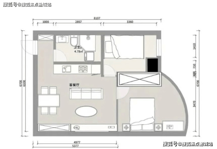 80平精装两房户型