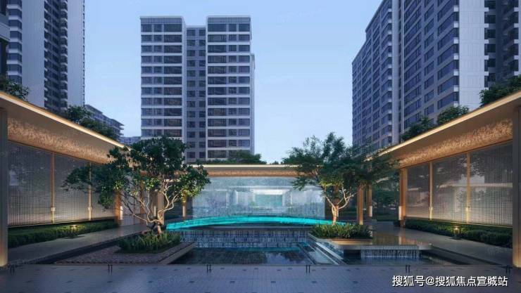切换到小区主入口,以院落、水景、长廊形成了系统化场景串联,以泗水归堂为节点,把喧嚣城市代入静谧园区,形成酒店般的归家感受.