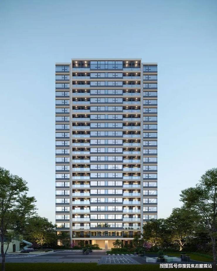 建筑风格:采用公建化现代派立面,简洁横向构图搭配大面积玻璃与金属线条,呈现通透光感效果。