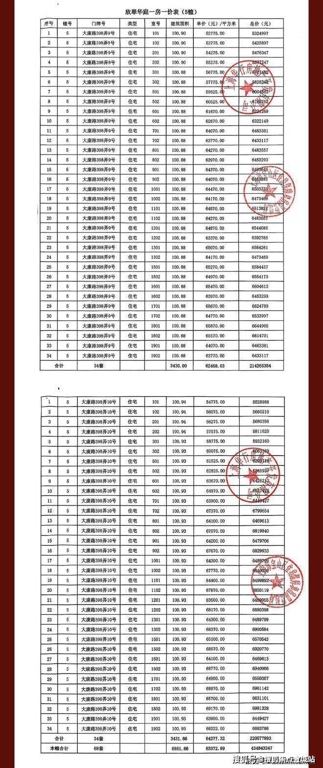 一房一价表: