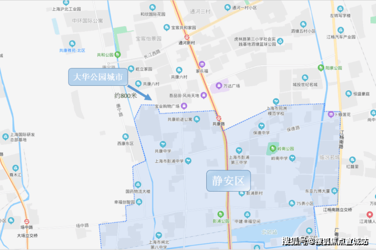 从地图上看,该地块距离静安区的直线距离只有800米,距离大宁核心区域仅约5公里,不仅离大宁国际商圈近,周边还有宝山万达、大华商圈等大型商业配套。