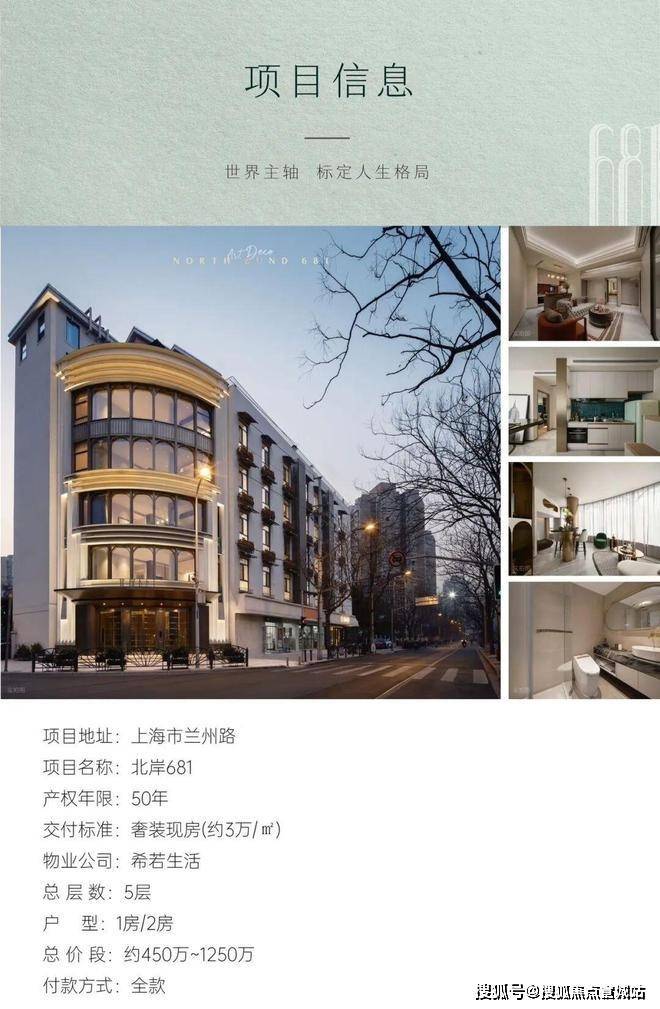 北岸681服务式公寓位于杨浦区内环内的兰州路上,✅✅北岸681售楼处电话:400-8123-224✅✅近轨交12/18号线平凉路/江浦公园站,周边有渔人码头、北外滩来福士及瑞虹商圈。已正式面世,项目总高5层,共提供36套37-97平studio/一房及两房公寓。