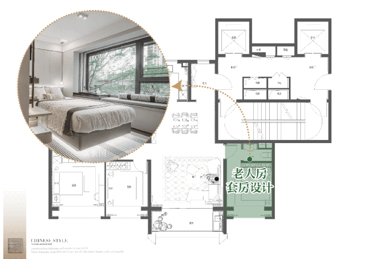 这种布局暗藏生活的巧思:LDKB的设计带来客厅-餐厅-厨房构成洄游动线,无界的设计打破空间隔阂提升空间的利用率;主卧、老人房与儿童房分厅而侧,实现三代同堂互不扰的居住智慧。