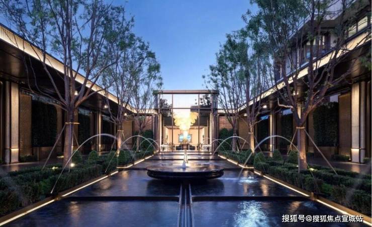 融合园林框景艺术,打造出秘境花园;阵列式跳泉、几何绿篱等,营造出富有仪式感的礼序水院;古典花坛、灵动涌泉,自然与艺术相互交融,勾勒出具有度假感的浮岛花园。