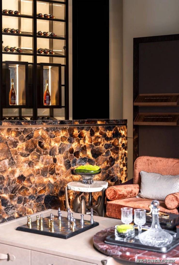 会所的红酒雪茄吧中,用了和其气质吻合的苏格兰“国石”烟水晶。