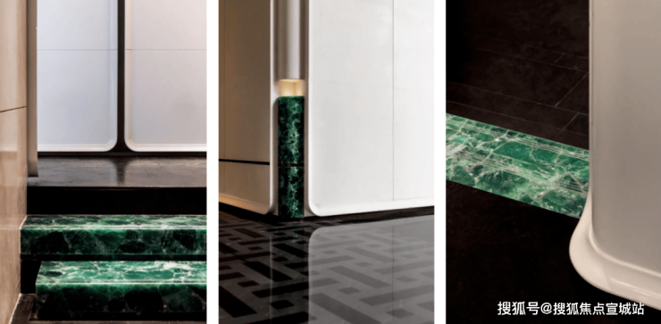 以孔雀石的翠绿光泽,融合进泳池高雅璀璨。自在畅游间,邂逅山茶的清雅,仿佛潜入内心的神秘梦境,尽享身心舒缓与感官愉悦。