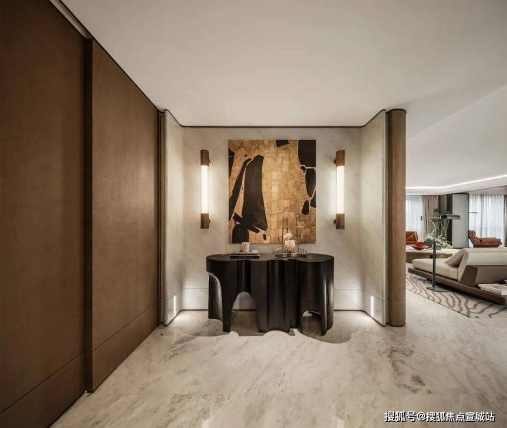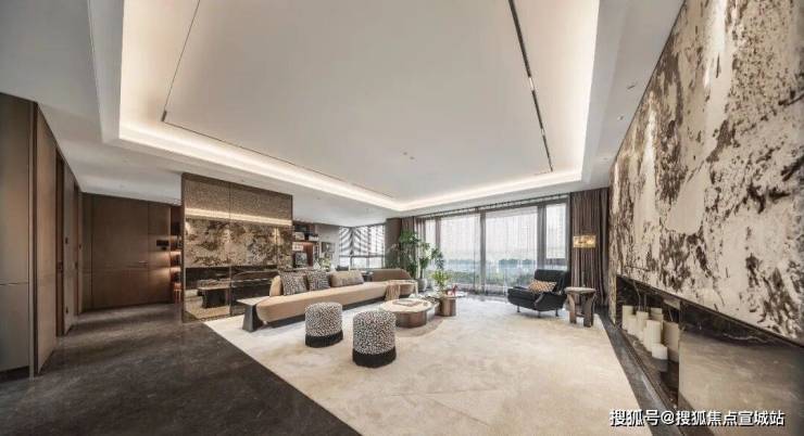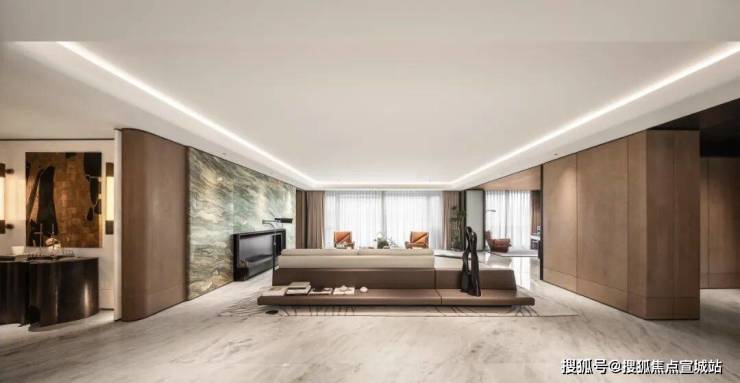 以木色为主色调打造,营造出了矜贵、艺术、电影感的空间氛围。样板间丰富臻装材质与品牌使用,平衡空间的奢华与舒适性,让居住始终以人为本,契合高阶人群审美与生活习惯,引领居者进入一个前所未有的生活美学新境界。