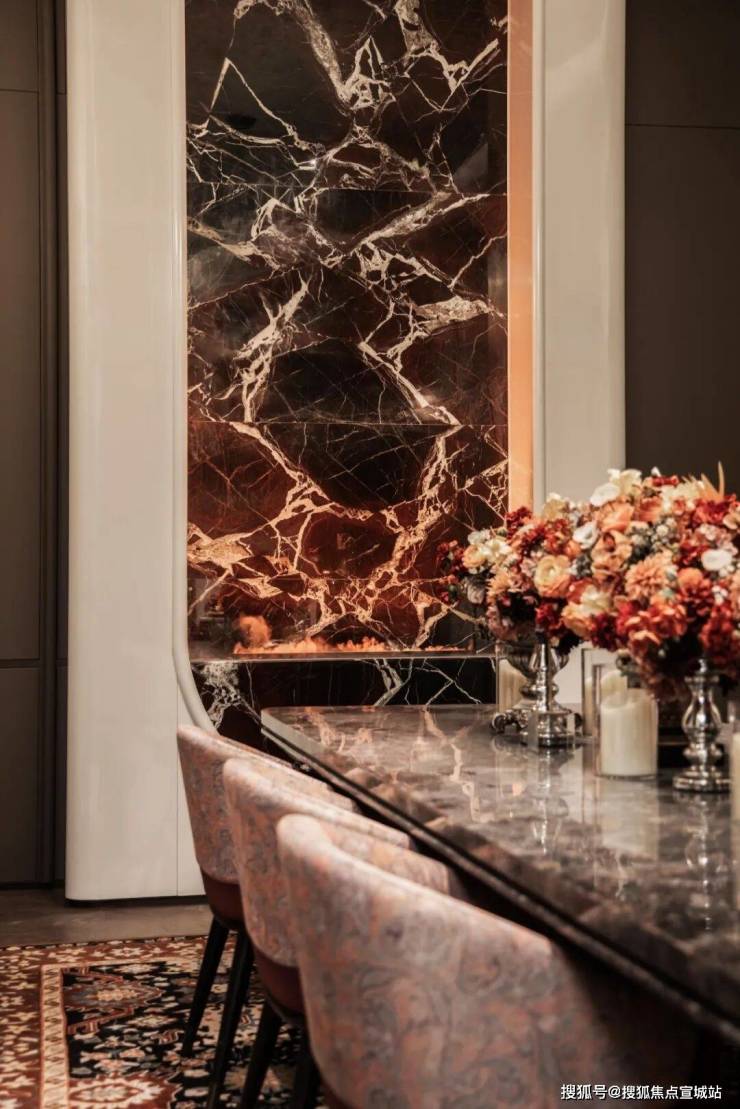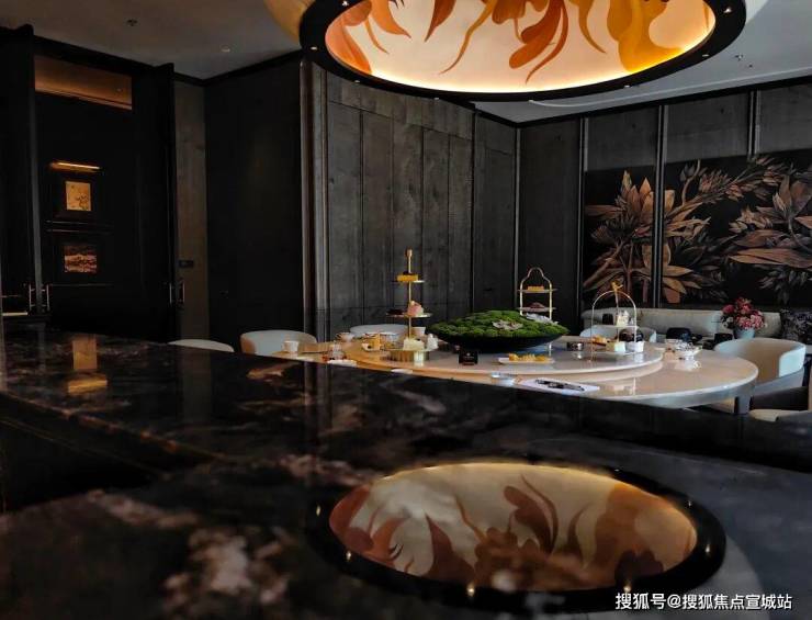 商务空间,则有铂金钻奢石打造的长桌、白宫同款的紫罗红奢石打造的背景墙。