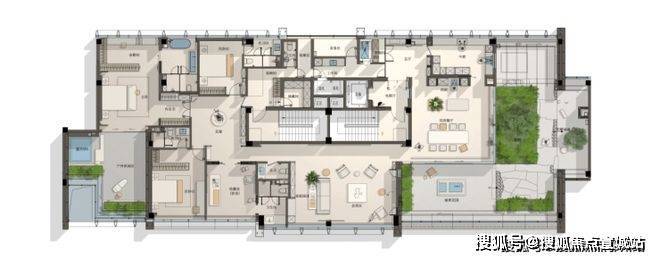 标准层也带南北双露台,约8.6m面宽的大方厅,居住舒适度明显高于一般的高层大平层。