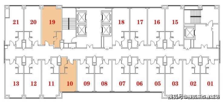 【电梯配比】每层19户(12户朝南,7户朝北),4部客梯,1部货梯