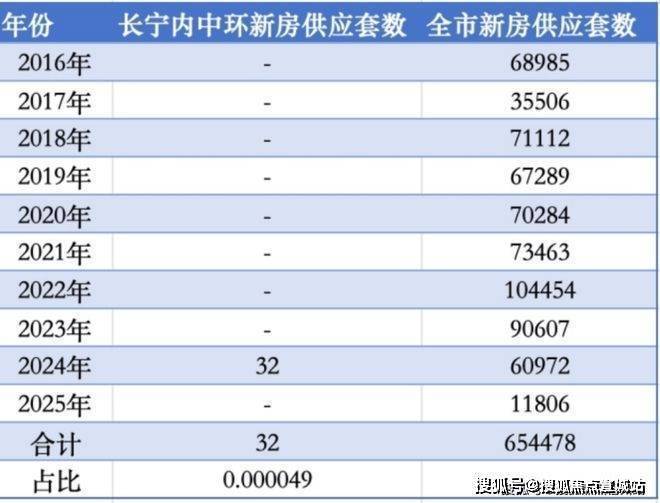 近10年(2016年至今)全上海合计入市新房65万多套,其中属于长宁内中环的只有32套,占比仅约0.000049!不到10万分之五的机会,珍稀程度简直爆表!