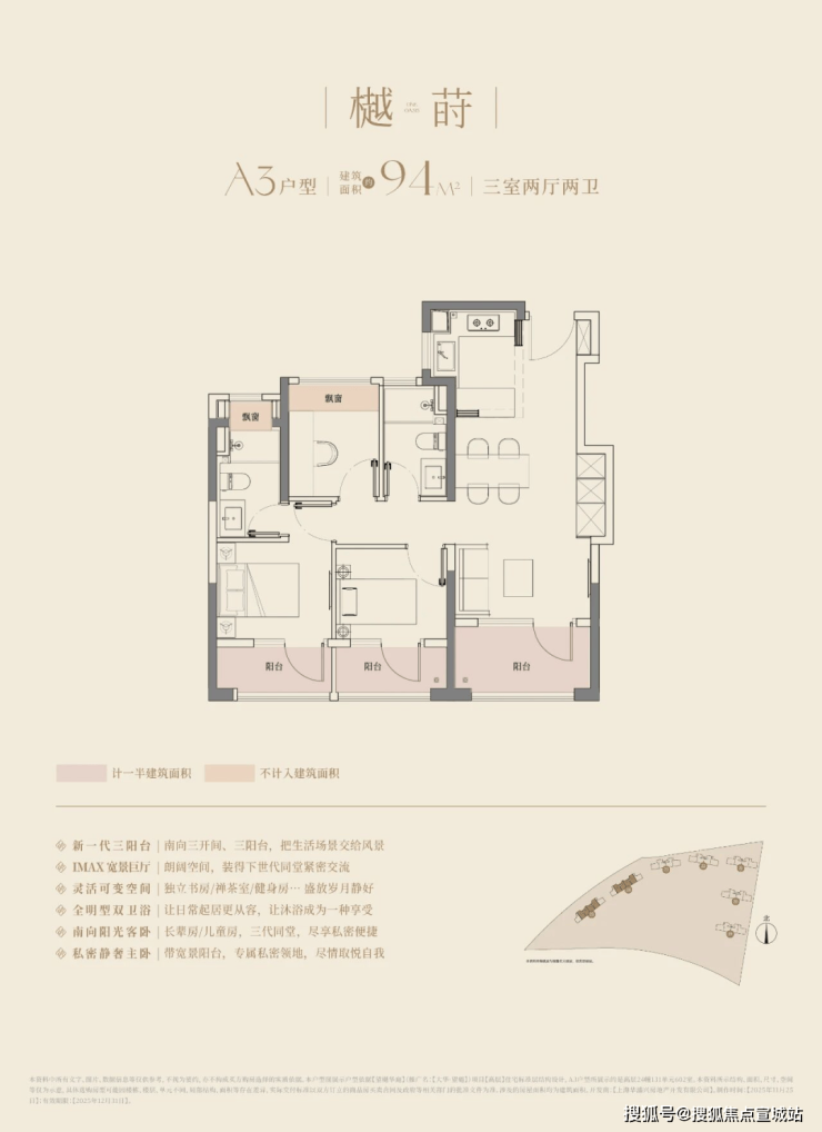 在这里,高层建面约94㎡户型做到了惊人的三阳台,对比同板块内以前的标杆小区,同面积段户型只做了1个阳台。不仅数量发生质的变化,实得面积也大大增加。