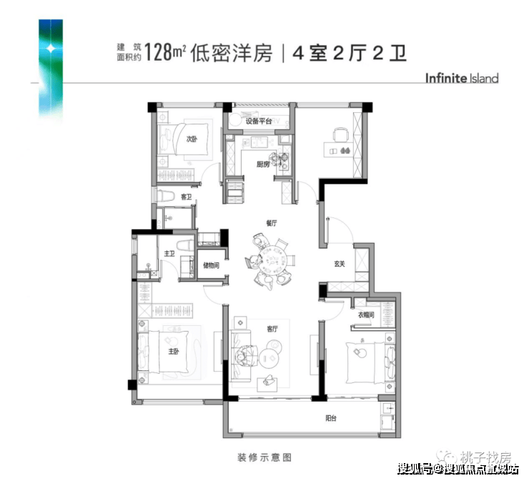 建面约128㎡户型为四房两厅两卫,该户型最大亮点是超高的得房率,也是最受市场欢迎的“四叶草”户型,四个卧室互不打扰,充分保证后期的生活隐私。户型尺度上也同样阔绰,近7米的双开间阳台,2.7m宽的U型厨房,每一个小空间内都可以承载很多的生活场景。