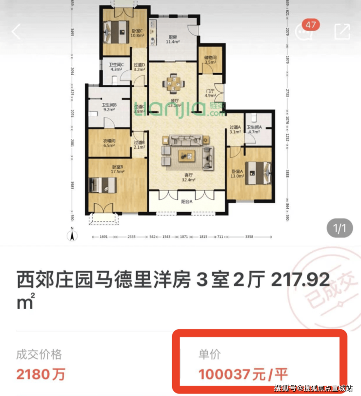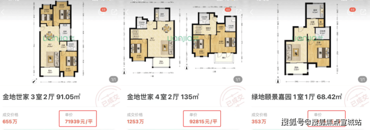 例如金地世家,二手价达到7万+/㎡,其叠加产品,今年挂牌价已冲上了9.3万/㎡,而同板块内其余二手房价大多在5万/平左右。