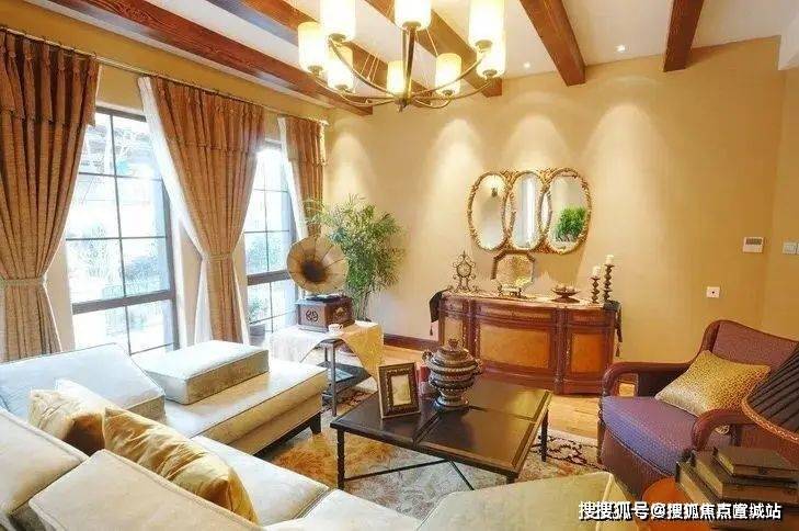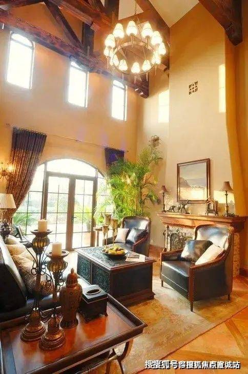 【同润圣塔路斯】采用美国南加州的建筑风格,外立面采用淡黄色的手工Stucco抹灰外墙和红瓦屋顶,将原汁原味的南加州风格复刻至此,同时融入原木、三色瓦片、红砖、铁艺、各式烟囱等元素,渗透一砖一瓦,仿佛置身异国小镇。