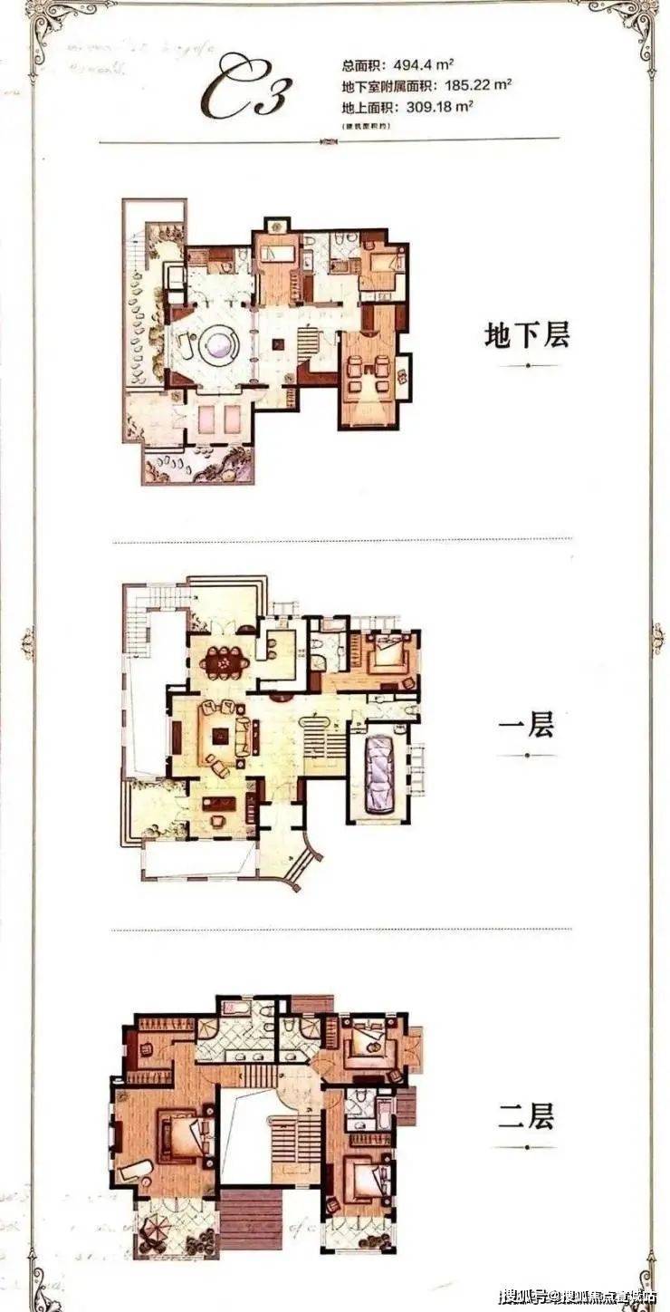 C3 地上309㎡(赠送)下沉庭院185㎡花园500㎡