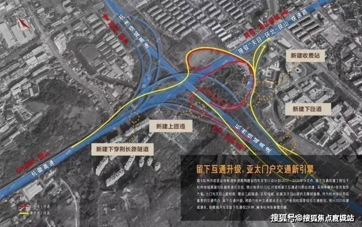 留下互通高速路口,杭州最大高速交通枢纽,项目开车至留下互通约2分钟,杭州留下互通作为杭州城西的主入城口以及天目山路与绕城高速转换的重要节点
