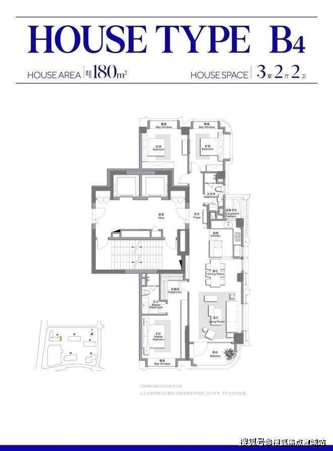 此外,客餐厅一体化、约270°弧形观景阳台配全卧飘窗皆为标配.、