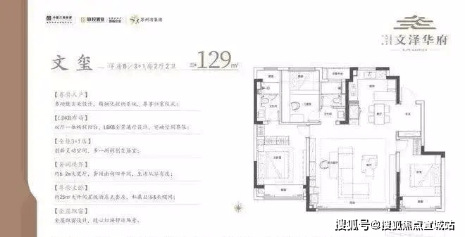 文•玺洋房B丨 建面约129 ㎡ /3+1房2厅2卫