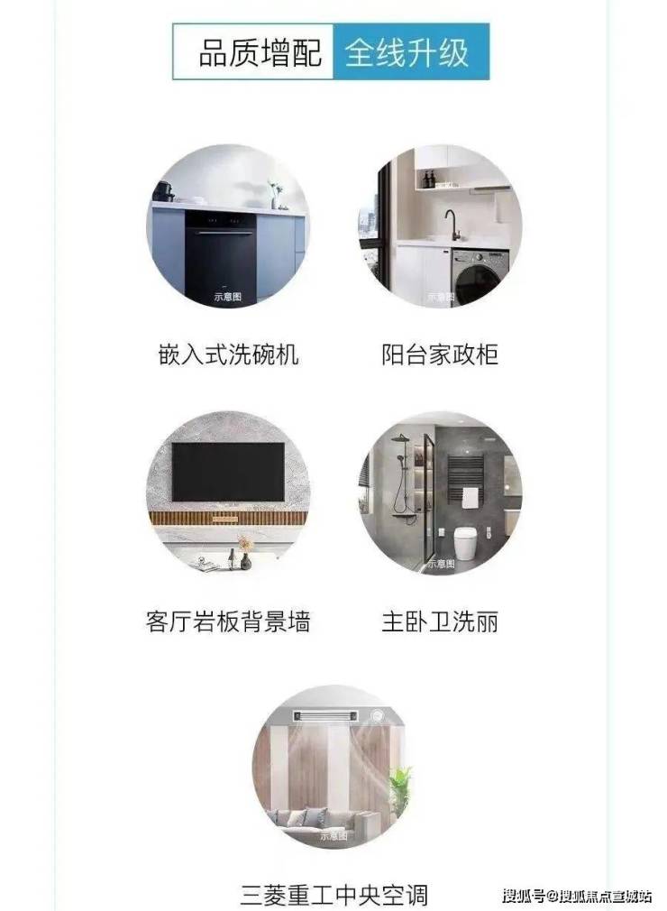 本次升标增加了嵌入式洗碗机、阳台家政柜、智能马桶盖、三菱重工中央空调、客厅岩板背景墙等等,为市场提供性价比更高,性能更高效,更健康、更安全的高品质住宅!