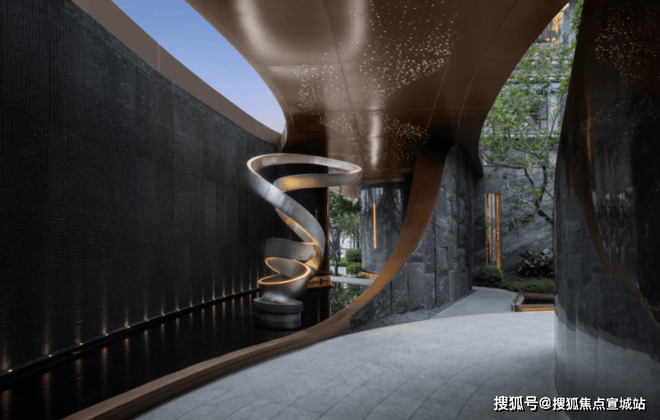 从园区入口开始,绿城·凤咏朝阳便展开优雅尊贵的生活礼仪。主入口超长雅趣门厅,取意“退隐”的艺术之意,通过横向延长的约80米长庭,柔化过渡与城市的界限,转身便愉悦在沐光悠廊、迎宾礼仪水景的视觉观赏中,进而投身到艺术会所的“心灵的疗愈”里。