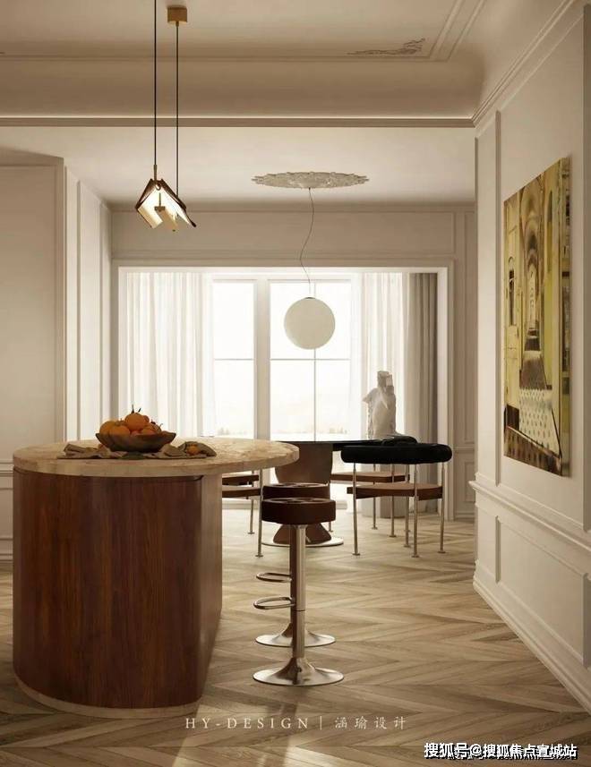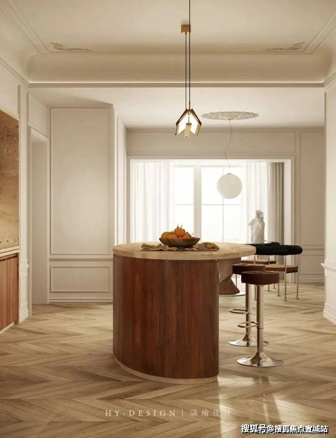 在这个空间里,岛台、西厨、门厅三者相互呼应,共同营造出一种休闲放松的氛围。无论是在岛台上享受一杯早晨的咖啡,还是在西厨中尝试新的食谱,或是在门厅中迎接归来的家人,都能在这个空间中找到一份宁静和舒适。