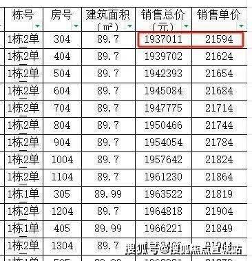 总价最高的是1栋2单元3303房,总价221万,单价24919元每平。