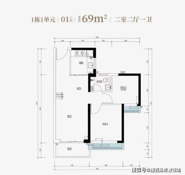两房总价最低的是1栋1单元303房,总价134万,单价19269元每平。