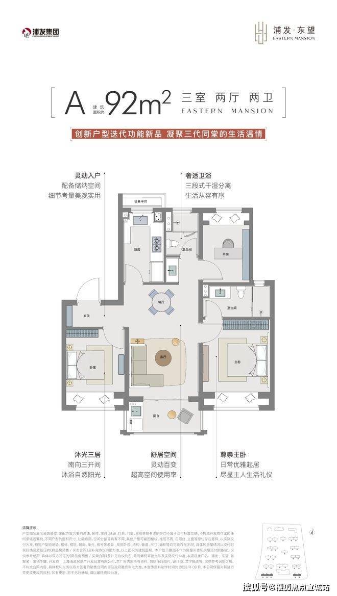 建面约92㎡3房产品市面上大多都是1卫的设计,但浦发东望为2卫的设计,实用性超高的同时,空间也较为宽绰。