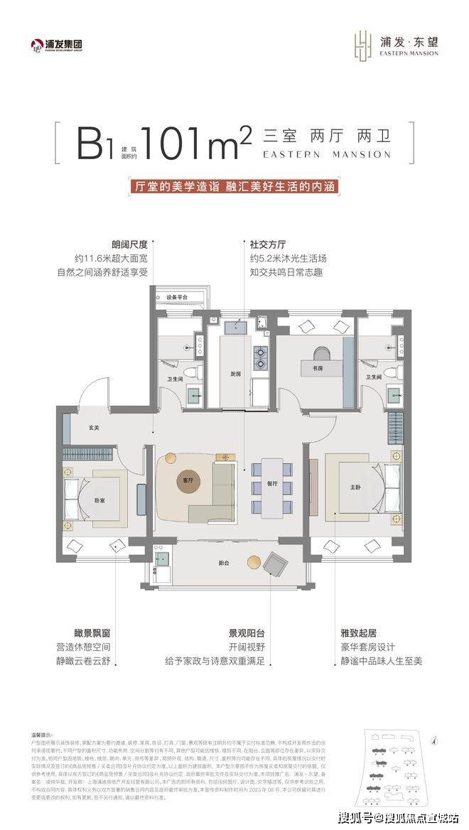 建面约101㎡B1户型尺度感惊人,约5.2米南向面宽的客餐厅以及阳台,为室内带来了非常出色的采光度。☑️☑️浦发上品售楼处电话:400-8862-334☑️☑️