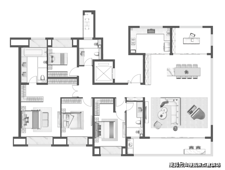 一梯一户大平层,约19.4m超大面宽南向开间,为精英家族定制奢适体面;