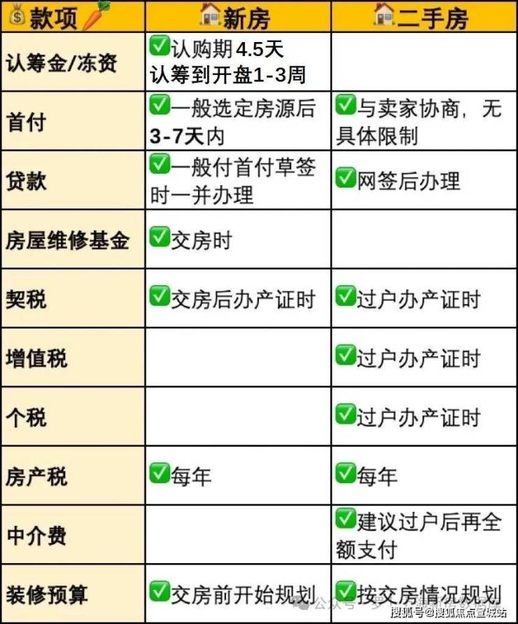 新房与二手房各环节所需资金