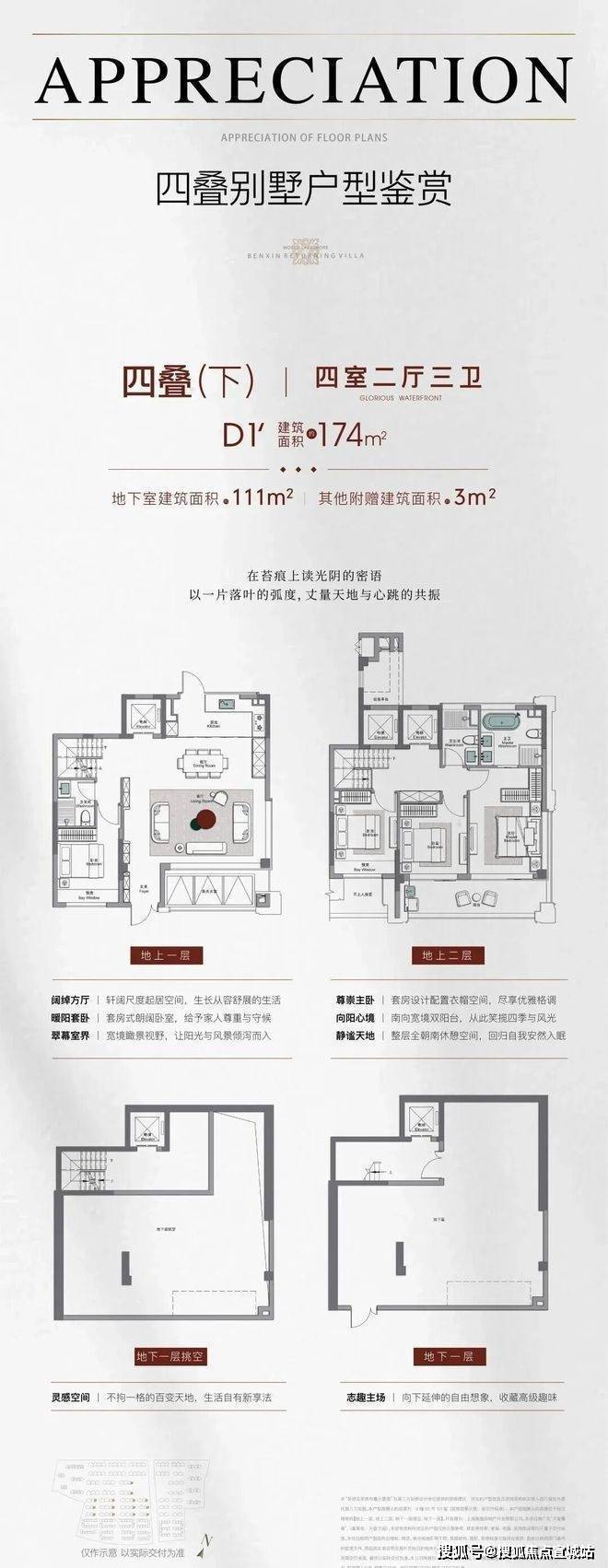 约179㎡四叠别墅上叠户型,有天有地+高得房率+奢阔尺度,买到即赚到!