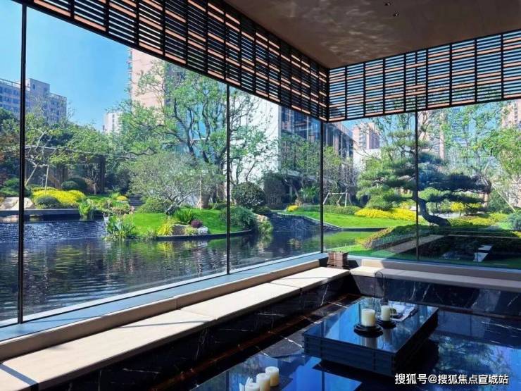 景观上,打造了实景呈现的成熟园林绿化, ”四时四感“的设计,让园区内四季都有植物盛开, 四季可观可赏,坐在下沉式看景会客厅,仿佛置身于高奢酒店之中。