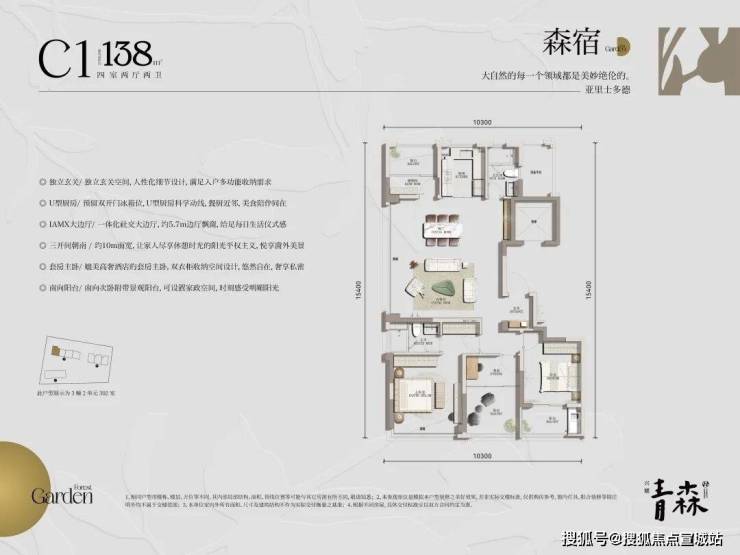 138平打造的是 四房两卫设计,分为 南厅和 边厅两款设计,满足不同的客户需求。