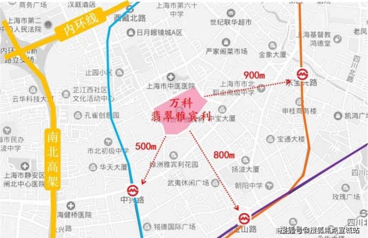 项目距离轨交8号线中兴路站仅500m,两站路即可到达人民广场;距离4号线宝山路站约800m,3号线东宝兴路站900米,项目1km距离内拥有3条轨交环绕,出行非常便捷。