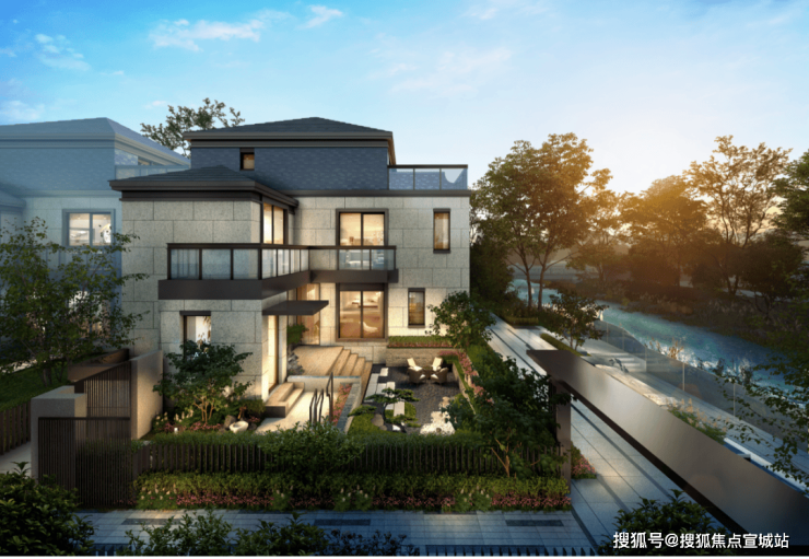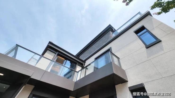 【上实·和风院】建筑外观是新中式格调,以黑色面瓦为黛顶,整体线条简洁明快。