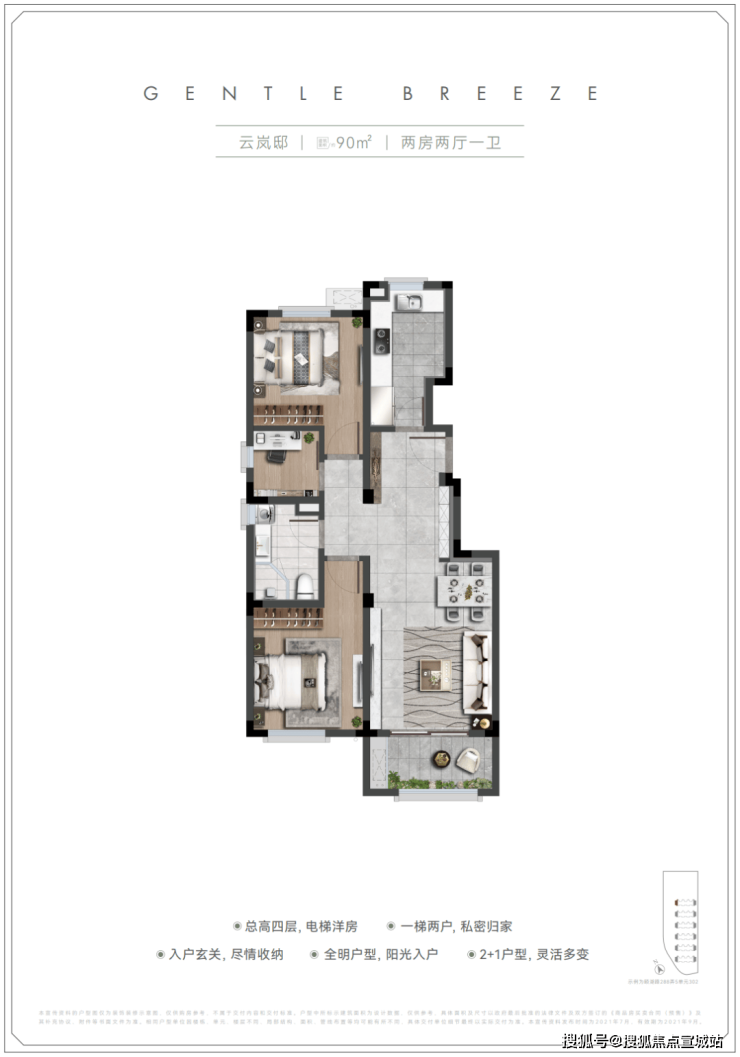 总体量:192套(80㎡144套,90㎡48套)