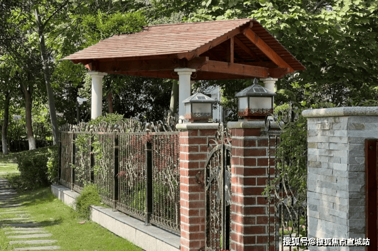 双拼别墅采用类独栋、独门独院的设计,前后庭院、阳台、露台、入口门廊搭配景观花架等,屋顶采用不同的坡顶设计。